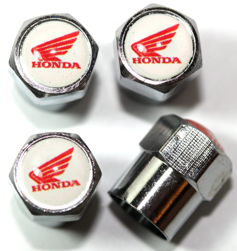 Honda White Wing Motorcycle Tire Valve Stem Caps – Plus Free Extra Cap