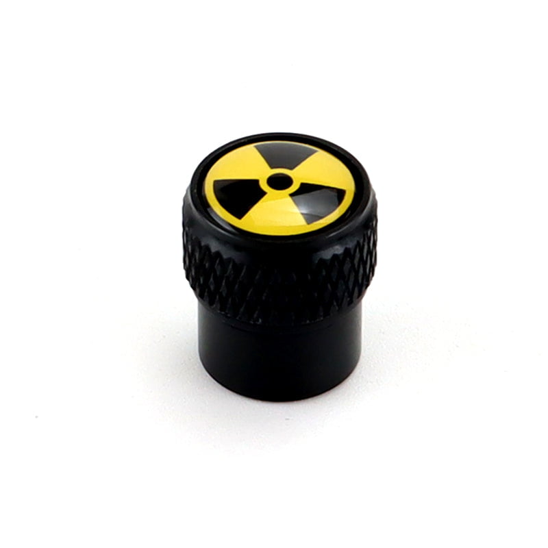 Radioactive Nuclear Symbol Aluminum Tire Valve Caps – Extra Spare Cap Total 5 Caps