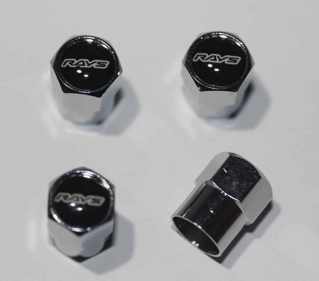 Rays Black Tire Valve Stem Caps – Plus Free Extra Cap
